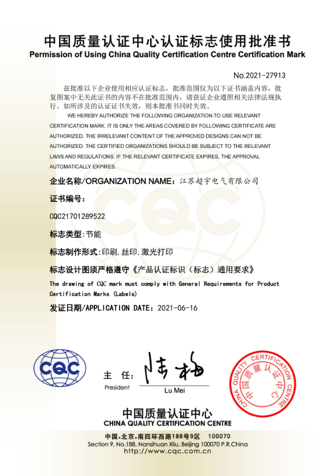 江蘇超宇電氣有限公司地處繁榮富饒的長江金三角,座落在聞名遐邇的生態(tài)示范區(qū)水上花園城市--揚中。公司成立于一九九六年,經過二十多年的發(fā)展進步,目前已形成專業(yè)化生產制造規(guī)模。 公司現有注冊資金3.0... ... [詳細>>]